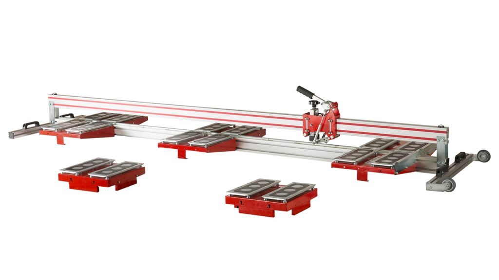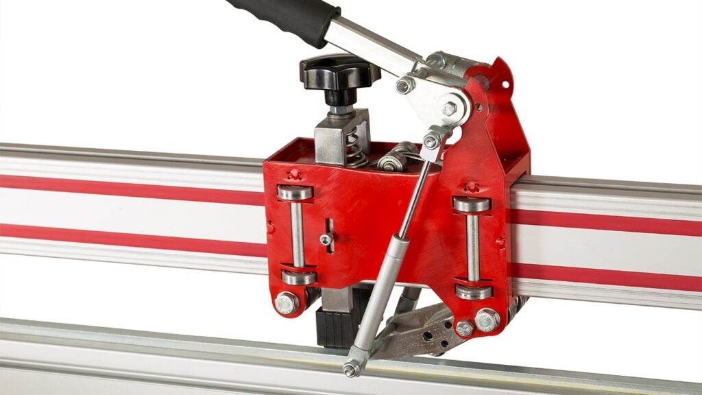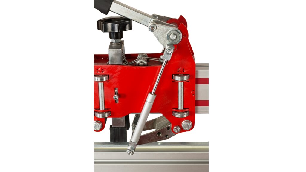 • Так як на алмаз подається постійний тиск, майстру не потрібно давити на ручку. Комплект машин, оснащений 20 підшипниками, виконує різання без проміжків і легко ковзає по доріжці різання.
