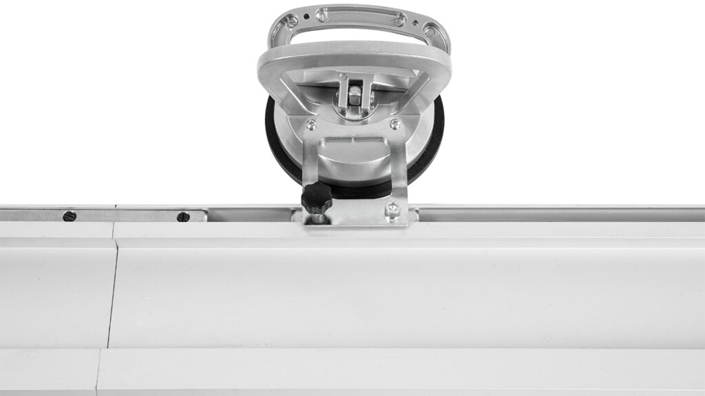 За рахунок застосування вакуумних присосок система жорстко фіксує положення напрямної плити.Комплектація: